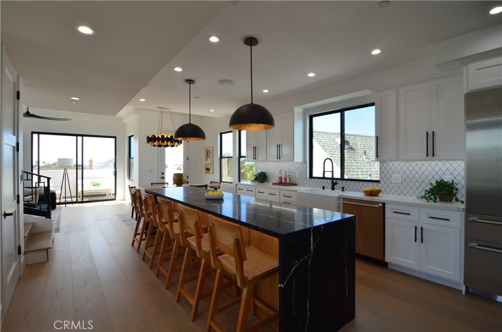 Welcome to a stunning new construction Craftsman masterpiece in the heart of prestigious South Redondo Beach. Spanning 4,319 square feet across three levels, this home offers 5 bedrooms and 7 bathrooms, thoughtfully designed with modern elegance and timeless craftsmanship. Step inside and be greeted by chic flooring, custom design details, and beautiful chandeliers that set the tone for refined coastal living. The elevator provides effortless access to all levels, including a rooftop deck with panoramic views of the Pacific Ocean and coastline. The gourmet kitchen is a chef’s dream, featuring a spacious pantry, large island, and Thermador appliances, perfectly paired with custom cabinetry and built-in Sonos speakers for seamless entertaining. Each bedroom enjoys its own dedicated bathroom and custom-built closets, while the luxurious primary suite boasts a spa-inspired bathroom with a soaking tub, dual vanities, and a walk-in closet with custom drawers. Enjoy cozy evenings by chic fireplaces or relax in the 3rd-floor living room and kitchen with breathtaking coastal views. Modern conveniences include central air and heating, paid-in-full solar panels, and impeccable design details throughout. This home is more than just a residence—it’s a statement of luxury, comfort, and California coastal lifestyle.