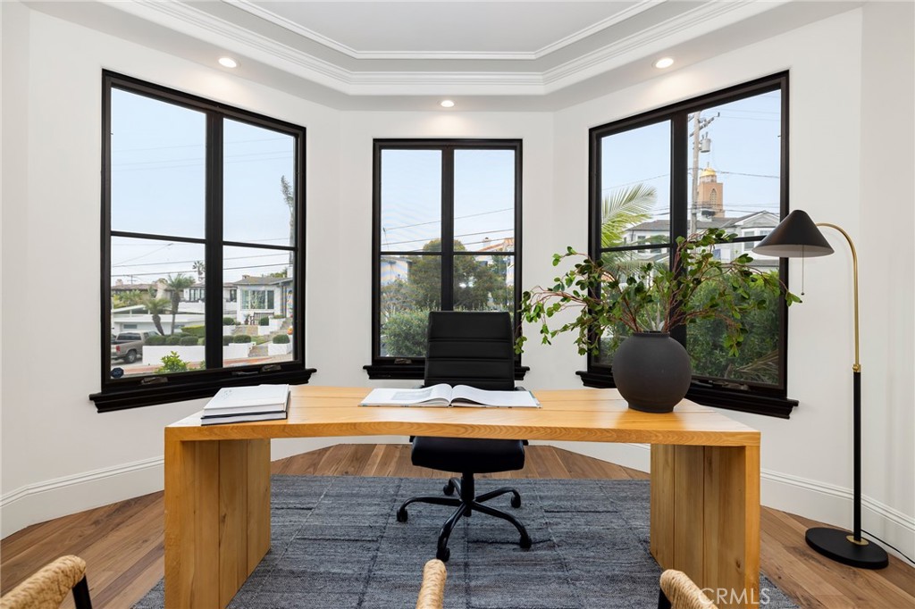 Presenting 624 14th St. The iconic Estate built and designed by the Tomaro brothers, atop Martyr’s Hill in the Tree Section, offering Ocean views, and custom craftsmanship. The reimagined property boasts 5 bedrooms, 6 baths, a media room, wine cellar, pool, spa and owned solar. The modernized Tuscany estate spans nearly 6,000sqft of living space on a generous 7,000sqft lot, perfectly situated on one of Manhattan Beach’s most sought after streets offering both privacy and an unbeatable location. High end finishes range from limestone, to real hard wood floors, custom cabinetry, berber carpet, wood finishes and designer lighting throughout. The custom remodel mixed rich and bold architecture with new modern finishes to give the property a timeless elegance. The heart of the the home boasts a brand new kitchen with a center island, quartz counters, brass finishes, designer lighting, Viking appliances, sub zero fridge, pot filler, wine fridge, a large butlers pantry and dumb waiter to the first floor. Seamless indoor-outdoor living defines the home, with arched French doors that fill each room with natural light and invite the outdoors in. The split level Estate features a large living room, dining room, and family room that all open to the exterior with two interior fireplaces for a cozy evening and a main floor bedroom and bath. Enjoy surround sound throughout the home all the way down to the first floor, where you can enjoy a private movie on a built-in movie screen and projector while entertaining from your dry bar and private wine cellar. The three car tandem garage offers plenty of storage via custom cabinetry. The third floor of the home is appointed with the main bedrooms each boasting their own private bathroom. Enjoy ocean views from multiple locations including the back private balcony and primary suite which boasts two balconies, two closets with custom cabinetry and an updated bath featuring a steam shower and bidet. There are many entertaining areas from the front balcony complete with a gas fireplace and ocean views, to an attached courtyard with artificial turf to the one of a kind yard. The private lot is appointed with a salt water, pebble tech pool, a private cabana and built-in BBQ, outdoor shower and tall hedges for ultimate privacy. Location is everything with this home being just minutes to the sand and downtown, a street from American Martyr’s church and just steps to the highly desirable Pacific ES, Live Oak and Dorsey Parks.
