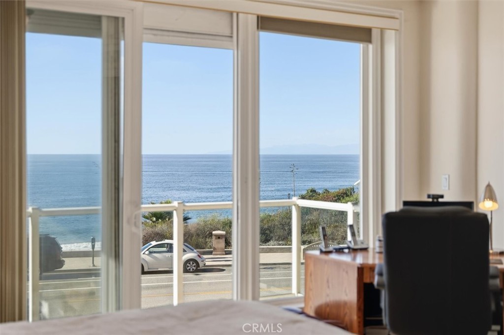 Three levels of direct ocean-view living define this rare South Redondo Beach residence—each floor a private vantage point overlooking the Pacific from Palos Verdes to Malibu. Set along the quieter stretch of The Esplanade, just steps from the Knob Hill beach stairs and minutes from Riviera Village, this three-bedroom, two-and-a-half-bath luxury oceanfront residence home offers front-row coastal living with rare added privacy. Built in the early 2000s as one of only three homes in a boutique development, this newer-construction property blends timeless design with modern livability. Tall ceilings (10' on the third floor and 9' on the first and second floors), genuine walnut and travertine floors,natural light, and walls of glass connect every interior space to the horizon. The open-concept main level flows effortlessly between living, dining, and kitchen areas, all leading to a full-width ocean-view deck perfect for morning coffee or sunset gatherings. The chef's kitchen combines form and function with stone counters, custom cabinetry, and premium appliances. Upstairs, the primary suite enjoys its own ocean-view balcony, walk-in closet, and spa-inspired bath with dual vanities, soaking tub, and separate shower. Two additional bedrooms, a full laundry room, and ample storage complete the upper levels. A reverse floor plan with entertaining and main living on the upper level adds to the security and privacy of this remarkable oceanfront find. On the entry level floor, a flexible beach room opens to an elevated patio and landscaped yard area—set above street level for enhanced privacy and reduced impact from passersby or pets. The space is ideal as a guest suite, home office, or media lounge with a coastal backdrop. A direct-entry two-car garage offers convenience and security, with easy access in and out of South Redondo via Knob Hill or Avenue A—an uncommon luxury for an oceanfront address. From this location, everything is within reach: the sand, the pier, and the boutiques and cafés of Riviera Village, Palos Verdes and beyond, Torrance shopping to the east and neighboring beach cities along The Strand to the North. Yet inside this home, the feeling is calm and removed—quiet, connected, and unmistakably the epitome of South Bay front row living.