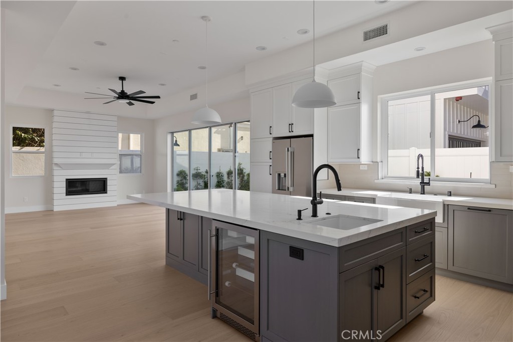 Imagine living where coastal elegance meets modern luxury in this brand-new Redondo Beach residence that truly lives like a single-family home. Perfectly positioned on a desirable corner, this home enjoys enhanced privacy, abundant natural light, and an open, airy presence that sets it apart—offering the comfort, scale, and independence of a standalone property while embracing refined coastal living. From the moment you enter, an expansive open floor plan unfolds beneath soaring ceilings, creating a sense of volume and sophistication rarely found. Sunlight pours through thoughtfully placed windows, illuminating high-grade finishes and impeccable craftsmanship throughout. The seamless flow between spaces makes both grand entertaining and relaxed everyday living feel effortless and intuitive. At the heart of the home, the designer kitchen is both a showpiece and a gathering place. A striking statement island offers generous storage and seating, complemented by premium appliances and a built-in wine refrigerator—perfectly suited for hosting, celebrating, or enjoying quiet evenings at home. The kitchen opens beautifully to the surrounding living and dining areas, allowing conversation and connection to move freely throughout the space. Warmth and ambiance abound with not one, but two fireplaces—gracing both the living room and the family room—each inviting cozy moments, intimate conversations, and memorable gatherings. Whether entertaining guests or unwinding after a day at the beach, these spaces offer comfort wrapped in timeless elegance. The primary suite is a serene retreat, designed as a personal sanctuary. Indulge in a spa-like bath featuring a spacious walk-in shower, a luxurious soaking tub, and refined finishes that evoke relaxation and tranquility. A generous walk-in closet completes the suite, offering both beauty and functionality. Additional thoughtful touches include a dedicated laundry room and an open office space ideal for today’s flexible lifestyle, whether working from home, pursuing creative passions, or managing daily life with ease. Every detail of this home has been carefully curated to elevate daily living and provide lasting comfort. Enjoy the unmatched advantage of living in Redondo Beach—moments from the ocean, award-winning schools, vibrant dining, and the best of the South Bay lifestyle. This is coastal living at its finest: elegant, effortless, and designed to feel like home the moment you arrive.