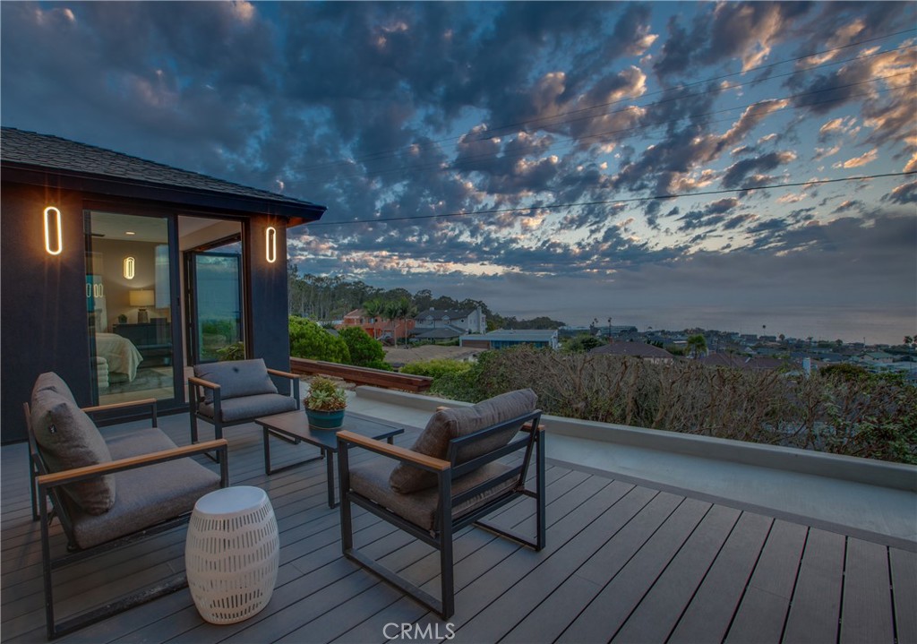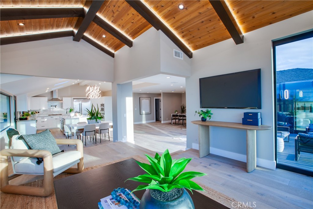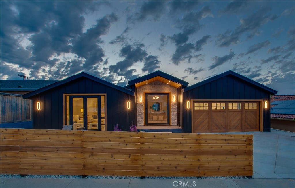 A Contemporary coastal ranch with modern farmhouse elements. The dark vertical siding paired with warm wood garage doors and trim provides a strong contrast and upscale curb appeal; Linear sconces add modernity and make the exterior glow at dusk, emphasizing architectural lines. A new horizontal cedar fence frames the lot, blending with the wood tones of the home. Minimalist landscaping (gravel, succulents, and low-water plants) suits a coastal climate and low-maintenance lifestyle. This coastal luxury retreat in the Hollywood Riviera has been newly reimagined to blend modern design with timeless finishes, offering three bedrooms and three bathrooms across an open floor plan filled with natural light. Sweeping ocean and sunset views define the living experience, with expansive picture windows and sliding glass doors connecting every major space to the outdoors. The rear living room is the architectural highlight, featuring vaulted ceilings with exposed wood beams and custom integrated LED lighting that accentuates the dramatic wood-plank detail overhead. A seamless flow leads into the dining area and designer kitchen, where quartz counters, premium stainless steel appliances, custom cabinetry, and an oversized island create a stylish and functional space for both entertaining and everyday living. The private master suite opens directly to the deck and includes a generous walk-in closet and a spa-style bath with dual vanities, modern tilework, and a walk-in shower. Two additional bedrooms and two full baths provide flexibility for guests, family, or office use. Outdoor living is equally impressive, with multiple view decks oriented toward the Pacific, blending indoor comfort with breezy coastal elegance. The contemporary exterior showcases stone and wood accents, complemented by drought-tolerant landscaping and a two-car garage with custom doors. Located just moments from Riviera Village, sandy beaches, dining, and award-winning schools, this residence embodies the best of Southern California coastal living. Due to the numerous inquiries during the development of this home, it is not expected to stay on the market long. Hurry, this one won't last.