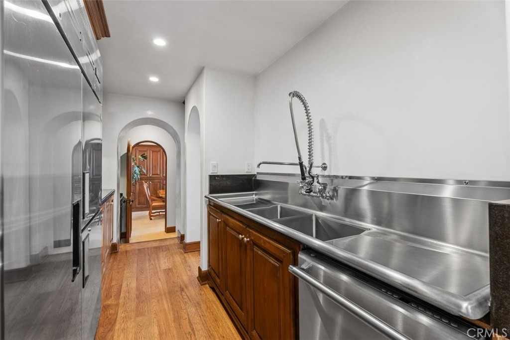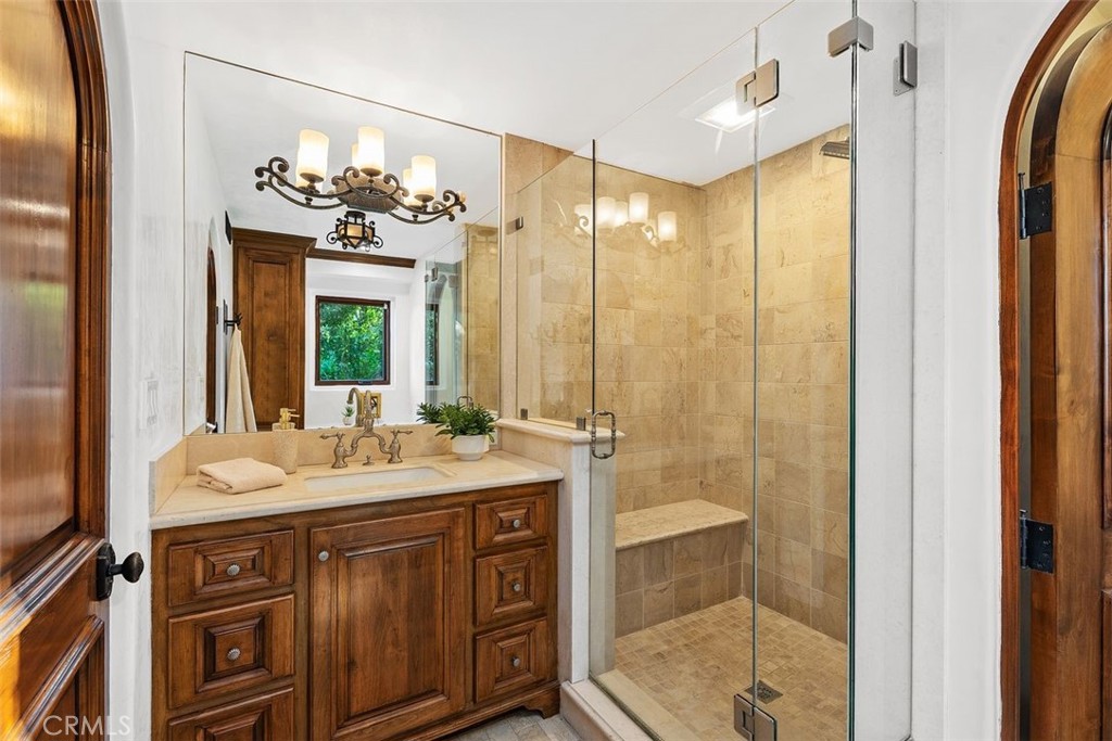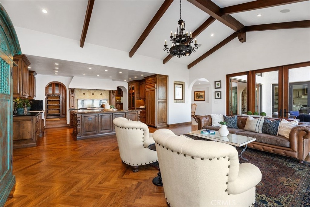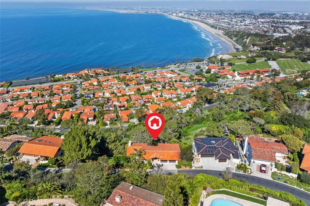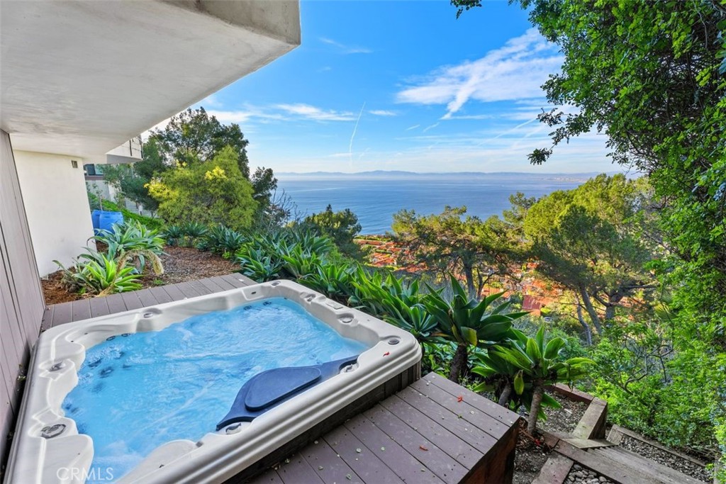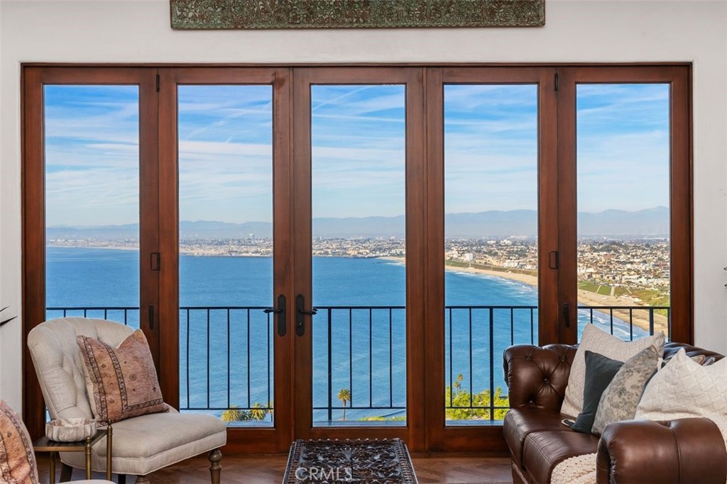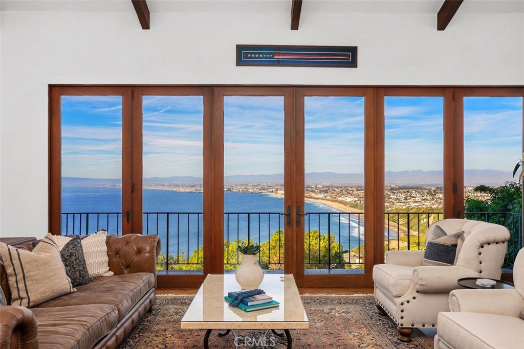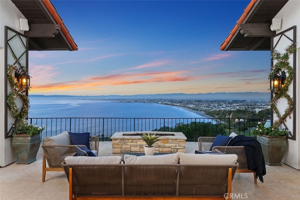 A rare opportunity to own one of Malaga Cove’s most compelling view properties, this custom, Spanish-inspired estate captures panoramic Queen’s Necklace and white-water ocean views while enjoying exceptional privacy adjacent to parkland within Palos Verdes Estates. Completed in 2025, the full remodel blends timeless architecture with modern infrastructure and artfully appointed finishes, including white smooth plaster walls with a Venetian wax finish, expansive 8-foot bifold doors spanning 15–18 feet, custom-sized milled hickory pecan herringbone flooring, limestone floors in Versailles and herringbone patterns, and solid glazed alder cabinetry with extensive built-ins. Designed as a true culinary pavilion, the ocean-view kitchen opens to the family room and sits adjacent to the dining room for seamless entertaining. It features premium appliances, dual sinks, dual dishwashers, two refrigerator/freezers, including a 60-inch commercial unit, and generous prep space. A fully equipped dirty kitchen supports effortless hosting, while the exterior kitchen — complete with built-in smoker/BBQ, Argentinian grill, and a 60-inch wood-fired pizza oven — extends the experience outdoors. The dining room showcases a striking glass-encased wine cellar with a cellar pantry and abundant wine glass storage, opening to a patio with a gas fire feature overlooking the coastline. A beautifully appointed living room with a fireplace provides refined comfort nearby. The lower level offers a private retreat with a luxurious primary suite capturing breathtaking panoramic coastline vistas. The spa-inspired bath includes an 8-valve shower system with an oversized 8x24-inch main shower head and additional wall heads, plus warm flooring throughout. A custom primary closet completes the suite. Additional bedrooms provide privacy for family or guests. Below, a serene spa overlooks the coastline and a lush orchard featuring avocado, cherry, plum, apricot, apple, Meyer lemon, Baer lime, mandarin, blood orange, Buddha’s hand, Seville orange, pomegranate, fig, nectarine, peach, donut peach, guava, and bay leaf. A private path leads directly to the walking trail below. With fully upgraded water, sewer, gas, electrical, and heating systems, upsized water lines, and exceptional additional storage, this residence delivers rare views, privacy, craftsmanship, and elevated coastal living.