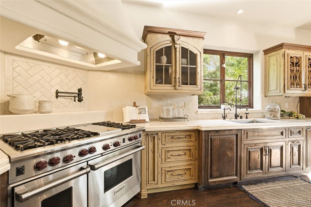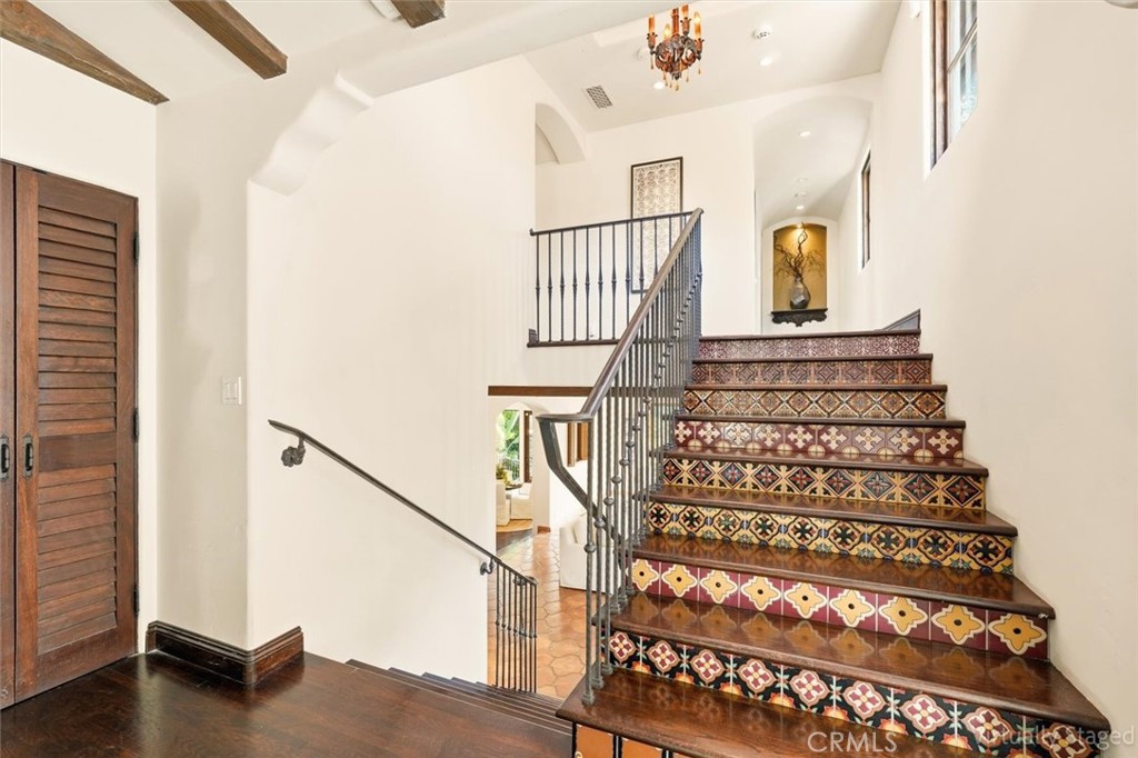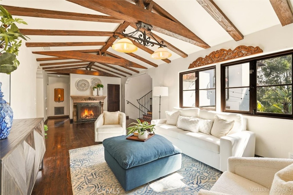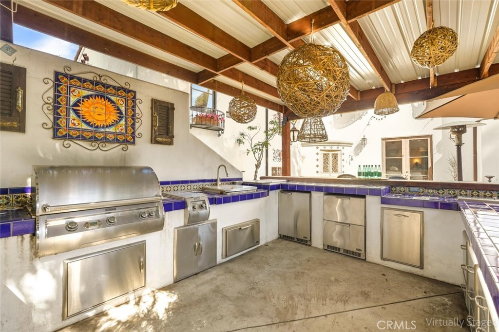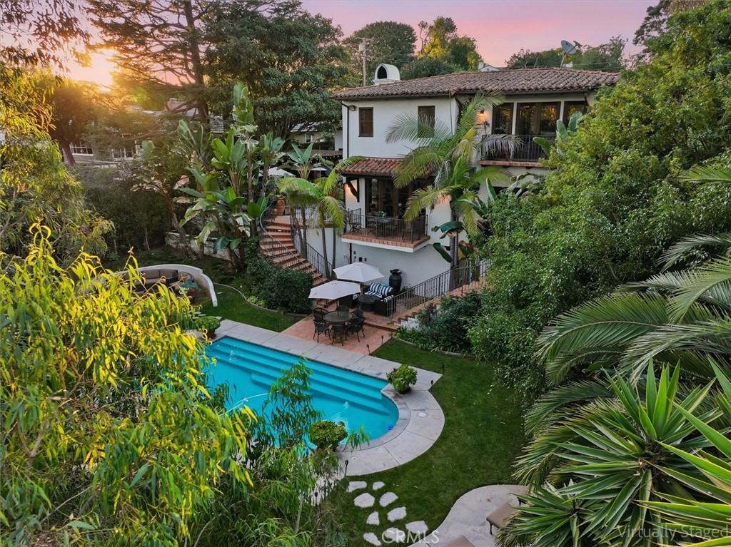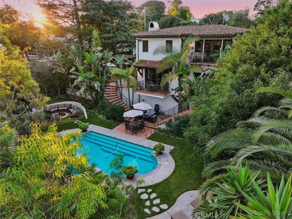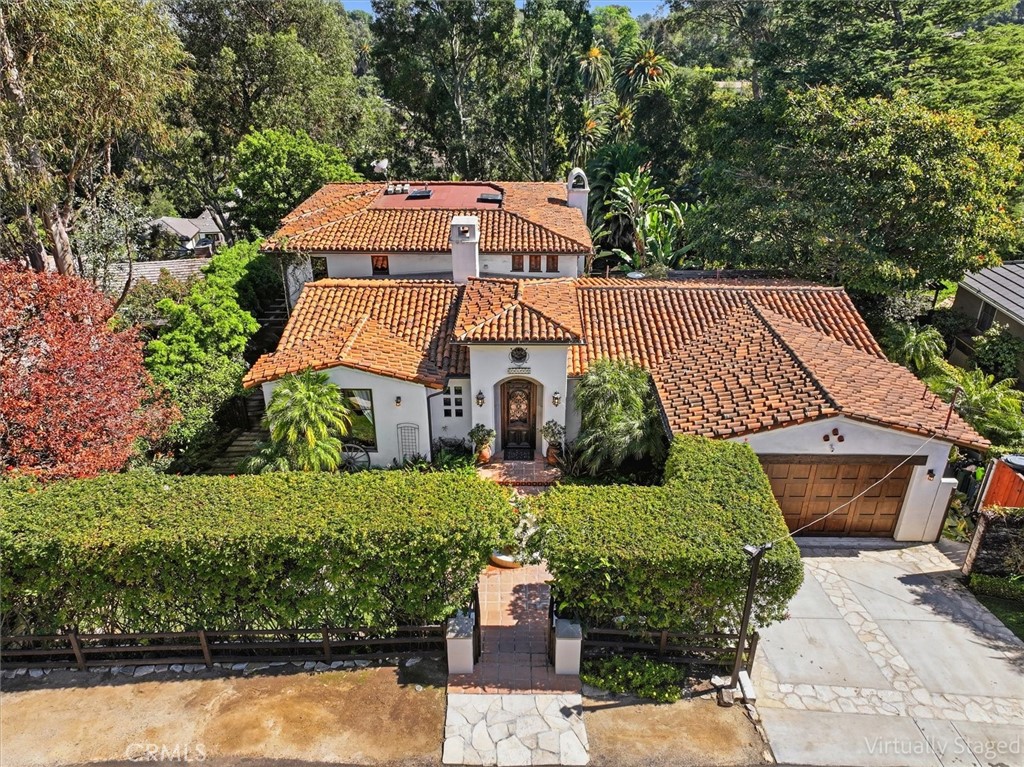 Gorgeous custom 1920s Spanish Hacienda located in the highly desirable Valmonte section of Palos Verdes Estates, designed by world-renowned architect Miles Pritzkat. This exceptional residence offers 4 bedrooms, 4 bathrooms, and just under 4,000 square feet of living space on an expansive 13,384-square-foot lot. Enter through an antique Egyptian door into a private courtyard and a home rich with character and timeless elegance. The gourmet chef kitchen features Sub-Zero, Miele, and Wolf appliances, custom cabinetry, and striking antique chandeliers. A formal dining room opens to a stunning patio overlooking resort-like grounds, which are visible from almost every room in the home and enhanced by multiple outdoor fireplaces. Designed for true indoor-outdoor living, the property showcases lush landscaping, an outdoor kitchen, multiple lounging and entertaining areas, out door fireplace and exquisite vintage tile work throughout. The sparkling pool and spa preserve the original 1920s Spanish charm, creating a private oasis. The primary en-suite retreat features a beautiful Spanish-style fireplace, an expansive private patio, and a private balcony overlooking the backyard and pool—nothing short of magnificent. A second kitchen and additional washer and dryer offer excellent flexibility and can easily be configured as in-law quarters or a junior ADU. A rare opportunity to own a piece of Palos Verdes architectural history. Modern Life meets Spanish charm!