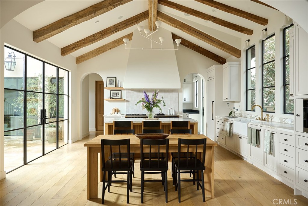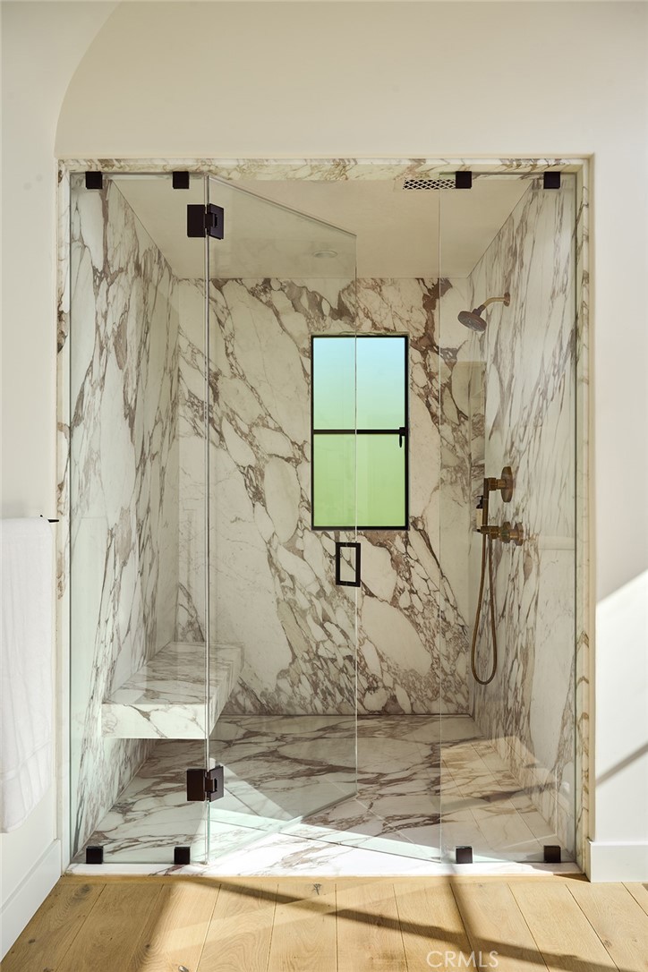 Designed by Domani Architecture and boasting unparalleled golf course views, this spectacular estate embodies a rare fusion of old-world craftsmanship and cutting-edge innovation. Offering five bedrooms and five-and-a-half baths in 6,506 square feet on a .34-acre lot, this architecturally stunning residence is truly one-of-a-kind. A single-lane driveway and rear-facing gated garages ensure a gracious and elegant curb appeal. Handcrafted steel windows, oak rift doors throughout, a slate roof, smooth stucco with copper accents, and a rich palette of the finest materials set the tone for uncompromising elegance. Stepping through the solid wood front door, a view unfolds from the intimate foyer to the light-filled courtyard, where a covered outdoor loggia extends the living spaces seamlessly. Designed for privacy and tranquility, this central gathering space creates the perfect area for entertaining. Inside, nine-foot-tall steel windows and doors blur the lines between interior and exterior, creating both drama and warmth. The living room, anchored by French Oak floors and a Town-and-Country fireplace, flows effortlessly into the chef’s kitchen, where a French Lacanche range, Calacatta marble countertops, and a butler’s pantry with a checkerboard marbled floor create the ultimate culinary experience. The Primary Suite is a private retreat with motorized window treatments, a marble-slab shower, and custom cabinetry. Additional bedrooms are spacious and inviting with designer finishes and built-in storage. Created to entertain with ease, the basement boasts a temperature-controlled wine cellar, a home theater with a 120” projector and Dolby surround sound, and a lounge finished in Roman clay. Outside, a saltwater plaster pool, fire pit, an outdoor kitchen, and French limestone patios were created to enjoy year-round. State-of-the-art amenities include a Savant Smart Home system, Lutron lighting, and distributed audio across multiple music zones, as well as a water filtration system and a natural gas-powered generator, ensuring smooth functionality. This extraordinary estate blends consummate craftsmanship with modern innovation, offering refined luxury in an idyllic setting.