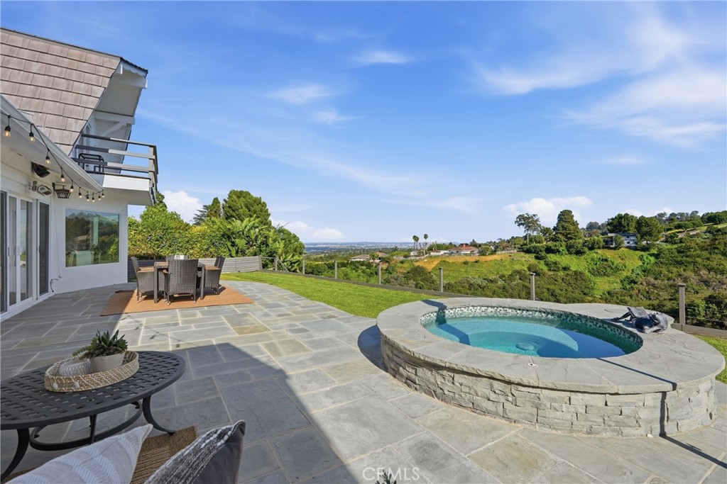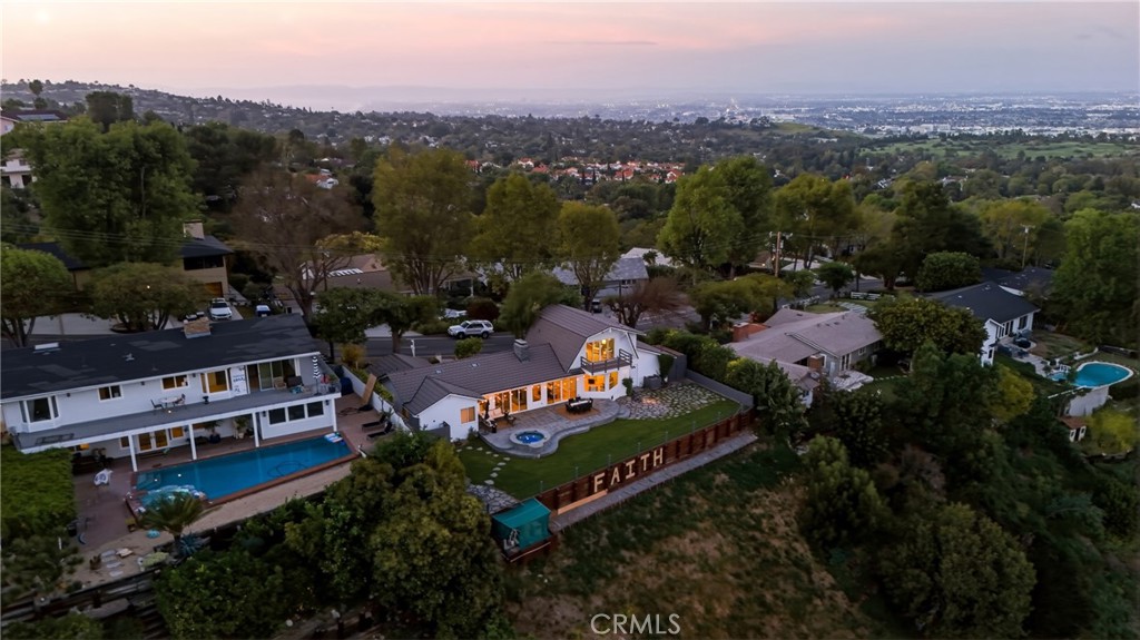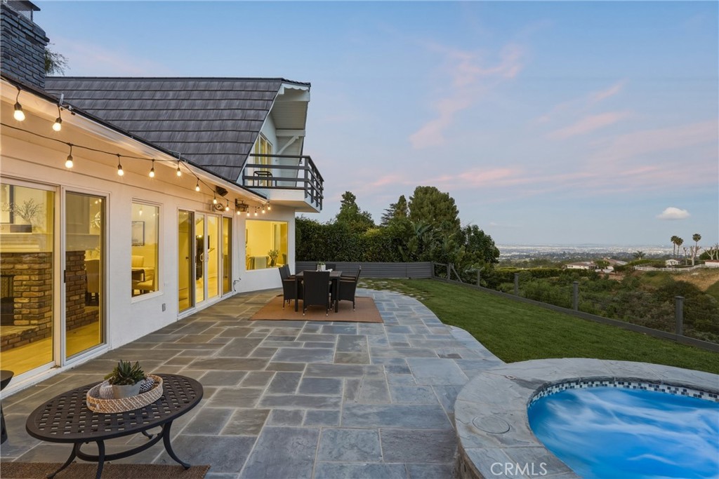 Tucked within one of the Palos Verdes' most charming and low-turnover enclaves, 27078 Sunnyridge Road offers a rare combination of privacy, views, and community amenities in a setting that feels worlds away, yet remains conveniently close to beaches, freeways, and daily conveniences. Perched along a scenic canyon, this 3 bedroom, 3 bathroom home enjoys sweeping views of Rolling Hills, canyon greenery, and distant city lights from most rooms. Expansive windows invite the outdoors in, filling the home with natural light and creating a seamless connection to the peaceful landscape beyond. Just beyond the property lies protected open space ensuring the natural canyon setting and views remain unobstructed. Inside, the home showcases a refined transitional aesthetic with soft neutral tones, clean lines, and thoughtfully curated finishes that feel both fresh and timeless. The main living spaces are beautifully presented with a light, cohesive palette that enhances the home’s airy feel and complements the surrounding landscape. In the kitchen, warm beige cabinetry is paired with polished nickel hardware and elegant fixtures, creating a sophisticated yet welcoming space designed for both everyday living and effortless entertaining. The spacious backyard is a private retreat, featuring a built-in spa, large patio for entertaining, and fire pit; ideal for quiet evenings, weekend gatherings, or simply enjoying the calm of canyon living. Located within a close-knit community of approximately 300 custom homes, residents enjoy access to a private riding ring, picturesque hiking and bridle trails, and a neighborhood tennis court; a rare lifestyle offering on the Peninsula. The neighborhood is known not only for its scenic beauty, but also for its strong sense of community, where neighbors gather throughout the year for events and celebrations. For those drawn to the Peninsula’s exceptional schools, the home also presents a wonderful opportunity to settle into the district while enjoying the charm and character of this unique neighborhood. Whether your ideal day includes a morning trail ride, a tennis match, children playing in the yard, working from home, or unwinding under the stars, this property offers the flexibility to live beautifully and intentionally. This is a rare opportunity to own a view property in a boutique Peninsula community where privacy, nature, and lifestyle converge.