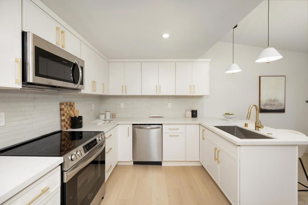 Luxurious townhome in The Terraces of Rolling Hills Estates. This fully remodeled 4-bedroom, 3-bath home blends modern sophistication with tranquil surroundings and sweeping city lights views. The beautifully redesigned kitchen features quartz countertops, stainless steel appliances, and custom cabinetry, while the soaring living room opens through sliding doors to a view balcony. A stylish dry bar enhances the dining area, creating an ideal setting for entertaining. Two bedrooms and a full bath on the main level provide flexibility, while the lower level hosts a private primary suite with dual walk-in closets, a spa-inspired bath with an oversized shower, and direct access to a secluded patio. A fourth bedroom with patio access and an updated bath completes the lower level. Residents of The Terraces enjoy resort-style amenities including multiple pools and spas, tennis and pickleball courts, scenic walking paths, and 24-hour guarded gate access. Ideally located near Palos Verdes schools, hiking trails, beaches, Terranea Resort, and South Bay dining and shopping, this turnkey home offers an exceptional opportunity to enjoy the coveted South Bay lifestyle.
