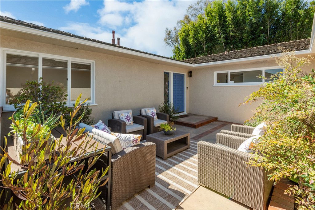 Nestled in the heart of Valmonte, this 5-bedroom, 3-bathroom home is a private retreat that seamlessly blends charm, serenity, and modern upgrades. At the entrance, a fabulous large private front courtyard sets the tone—perfect for morning coffee, evening gatherings, or simply unwinding in your own outdoor sanctuary. Inside, a bright, flowing layout awaits, featuring a spacious upper-level living room, dining room, and kitchen with breathtaking views of rolling hills and the lush green canyon. The bedroom wing offers a tranquil primary suite, two additional bedrooms, and a beautifully refreshed main bathroom, while the office easily transforms into the fourth bedroom to suit your needs. The lower level features a generously sized family room that flows seamlessly into a backyard oasis, ideal for entertaining. Surrounded by natural landscaping, the outdoor space includes a patio and offers direct access to the canyon trail. This level also includes a spacious fifth bedroom with its own ensuite bathroom, a convenient laundry room, and a sizable storage room. Many upgrades - see separate Features Sheet. Located moments from the PV Golf & Tennis clubs, Palos Verdes Stables, and scenic trails, and within the award-winning Palos Verdes Peninsula School District, this home offers the best of Valmonte living. Don't miss this rare opportunity!