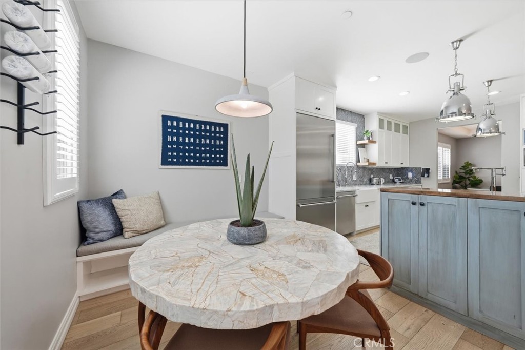 Perched on a coveted South Redondo hillside, this stunning Mediterranean-Spanish home offers elevated coastal living with breathtaking ocean views and an abundance of natural light. Seamlessly blending timeless architectural charm with modern finishes, this 3,300+ square-foot residence is both sophisticated and inviting. The home features five bedrooms and five bathrooms, including a private first-floor en-suite perfect for multi-generational living or hosting guests. Entertain effortlessly in the grand open-concept chef’s kitchen, complete with a dramatic two-tiered island, custom cabinetry, generous storage, and a stylish herringbone backsplash that adds texture and character. The kitchen flows directly into the spacious family room, making it ideal for gatherings. Upstairs, a bright corner nook serves as a home office or cozy reading space. The luxurious primary suite boasts dual walk-in closets, a spa-like bathroom for two, a private fireplace, and a balcony showcasing serene ocean vistas. Two additional en-suite bedrooms and a Jack-and-Jill bath with built-in closets ensure comfort and convenience for family and guests alike. Step outside to a rare, oversized backyard—perfect for entertaining, play, or creative customization. Above it all, the rooftop deck offers sweeping 180-degree coastline views, providing a front-row seat to stunning Pacific sunsets. South Redondo Beach is renowned for its natural beauty, award-winning schools, wide sandy beaches, and exceptional dining, shopping, and entertainment options. With a mild climate year-round, enjoy surfing, hiking, beach volleyball, and paddle-boarding just minutes from your doorstep.