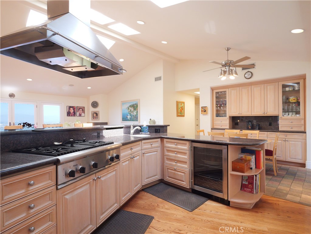 Set within the prestigious, guard-gated city of Rolling Hills, this extraordinary 5,500-square-foot residence offers sweeping City and Queen’s Necklace views from its bedrooms, decks and patios. French doors seamlessly blend indoor and outdoor living throughout this mostly single-story gem. Upon entry, the foyer welcomes with soaring ceilings and reveals an expansive, light-filled living room. A semi-open concept kitchen with Thermador appliances, granite countertops, and light wooden cabinetry serves as the perfect setting for both everyday living and the special moments in between. Vaulted ceilings, recessed lighting, curated alabaster light fixtures, hardwood floors, wide hallways, and generously sized bathrooms create an airy environment that feels both elegant and inviting. The oversized basement features a fitness room, storage room, full bathroom and wet bar, French doors openi to a Large Mediterranean style patio complete with an outdoor fireplace—offering additional space to retreat- or entertain! The home is comprised of 6 bedrooms and 7 bathrooms, including a fully self-contained guest house. Outdoors, a sparkling pool, putting green, barn, lush landscaping, and panoramic views provide an exceptional setting for both relaxed living and unforgettable entertaining. Welcome Home!