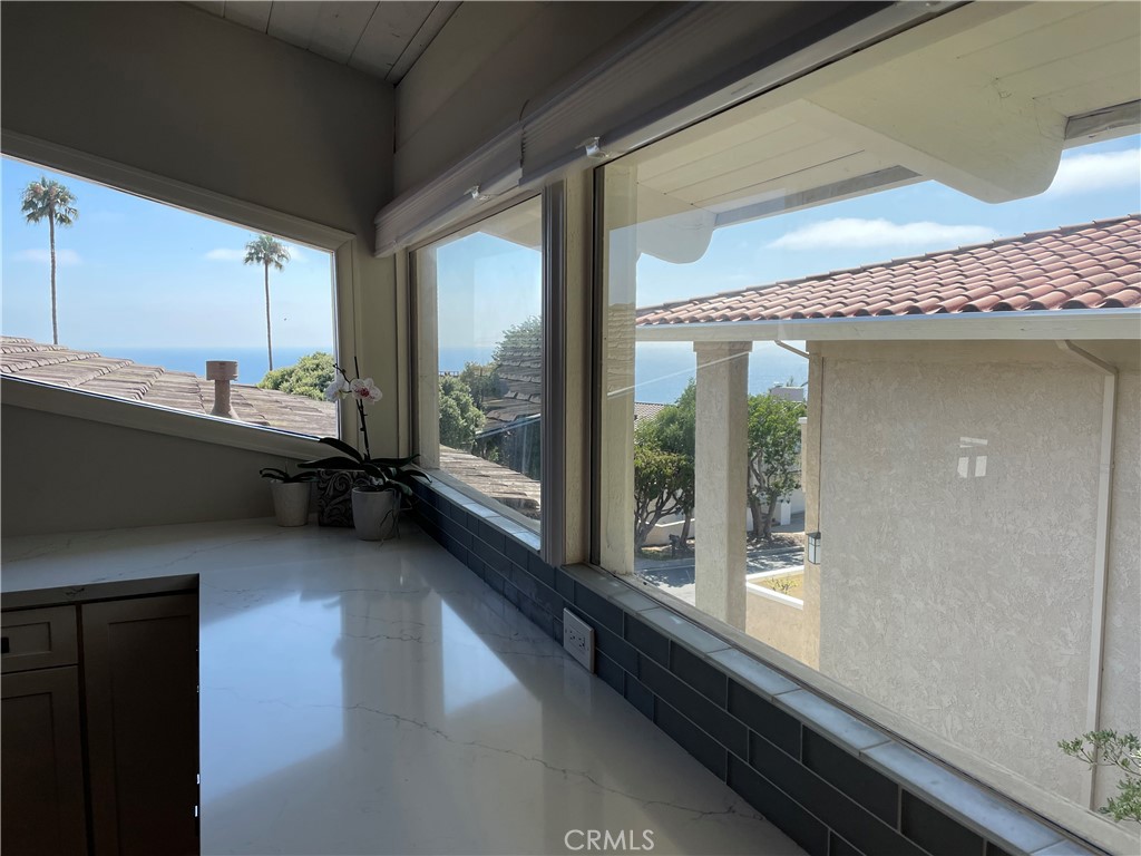 Contemporary, architecturally distinctive 5-bedroom, 5-bath home in Upper Lunada Bay with expansive ocean and Catalina Island views. Abundant natural light fills the home through large windows, and multiple decks surround the living room and four of the bedrooms to showcase sunsets and ocean breezes. The recently remodeled kitchen features quartz countertops, stainless steel appliances, a large island, and expansive windows with ocean views. One bedroom/family room has been converted to an ADU with a separate entrance; it includes a cozy fireplace, French doors opening to a private patio, built-in cabinets, a small fridge, and a remodeled private bath. The main-level powder room was remodeled in 2025. The large primary suite has a private bath and a separate entrance to the backyard; two additional bedrooms share a Jack-and-Jill bath. Other updates include air conditioning, a newer heater (2023), a new roof (2024) using original tiles with new underlayment, and a whole-house water filtration system. The attached two-car garage offers additional storage. The home is partially remodeled and freshly painted in most rooms. Located in Palos Verdes Estates, known for top-rated schools, dramatic coastline, community events, and a charming small downtown with restaurants, a grocery market, a coffee shop, and an artisan creamery.