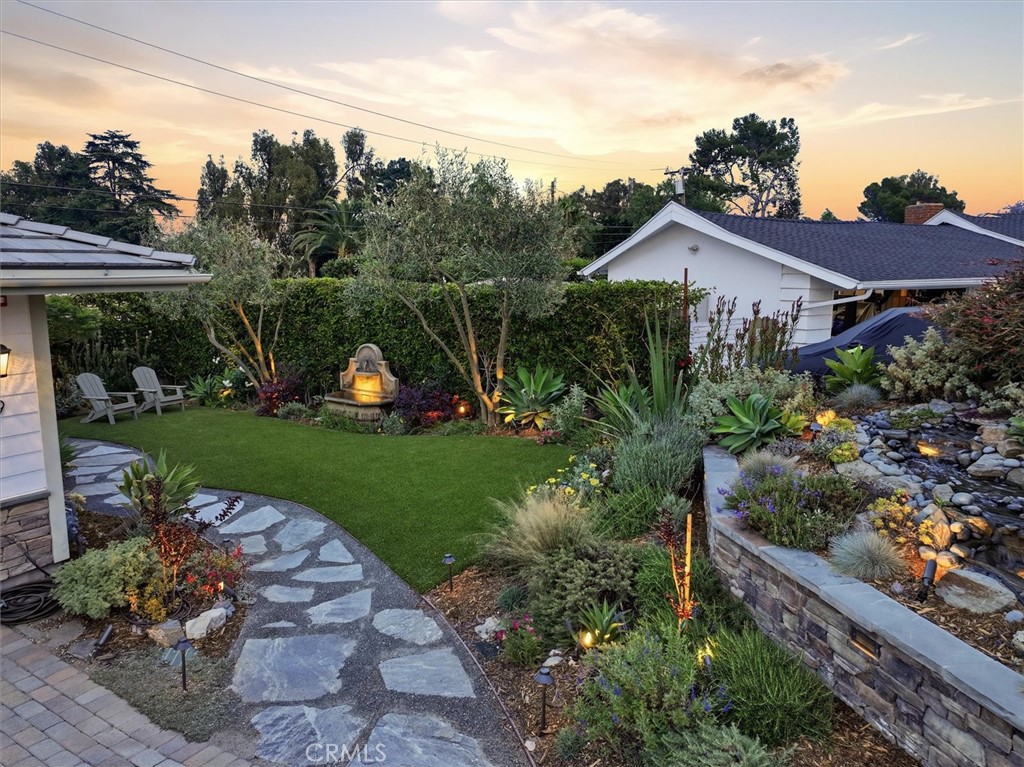 Rarely does a residence so perfectly balance contemporary design with the quiet charm of its surroundings. Tucked away at the end of a tranquil cul-de-sac, this 2016-built estate offers a premier opportunity to secure a newer construction home in the heart of Rolling Hills Estates. Spanning approximately 3,700 square feet on a lush half-acre lot, the property is designed with an emphasis on light and space. The home boasts soaring vaulted ceilings and a seamless, open-concept floor plan that prioritizes both effortless daily living and high-end entertaining. At the center of it all is a gourmet kitchen that serves as the home's heart, featuring a grand center island, premium Thermador appliances, and a seamless connection to the family room and sun-drenched outdoor spaces. Thoughtfully designed for privacy, all four bedrooms are en suite, each equipped with dedicated, full bathrooms and walk-in closets. The primary suite serves as a private retreat and opens directly to the backyard to capture peaceful pastoral and valley vistas. Throughout the interior, high-end finishes like wide-plank white oak flooring, dual-zoned air conditioning, and eight-foot solid core doors underscore the residence’s quality construction. Outside, the grounds have been transformed into a private resort, replete with tranquil water features and multiple seating areas designed to frame sweeping territorial and sunset views. The mature gardens are both beautiful and productive, offering a variety of fruit trees, cutting flowers, and dedicated planting beds. Beyond aesthetics, the home is equipped with modern essentials, including a three-car garage plumbed for EV charging, a whole-house water filtration system, and a fire sprinkler system. Ideally located near top-tier schools and the South Bay’s finest dining and beaches, this turnkey residence represents a sophisticated fusion of size, style, and serenity.