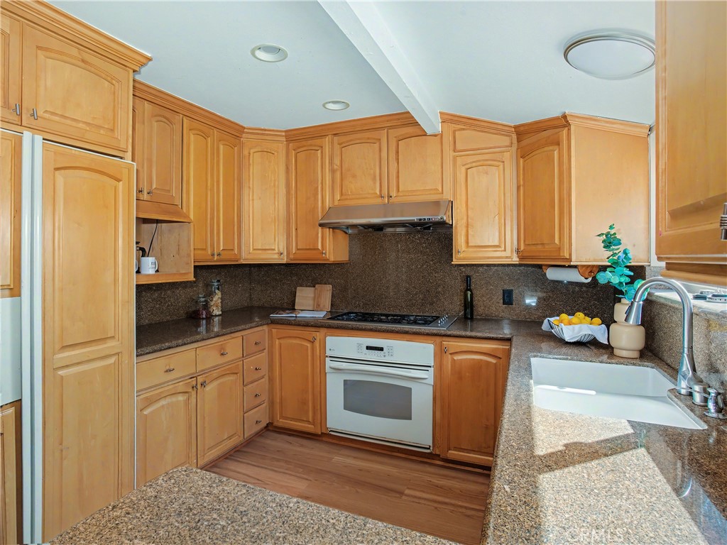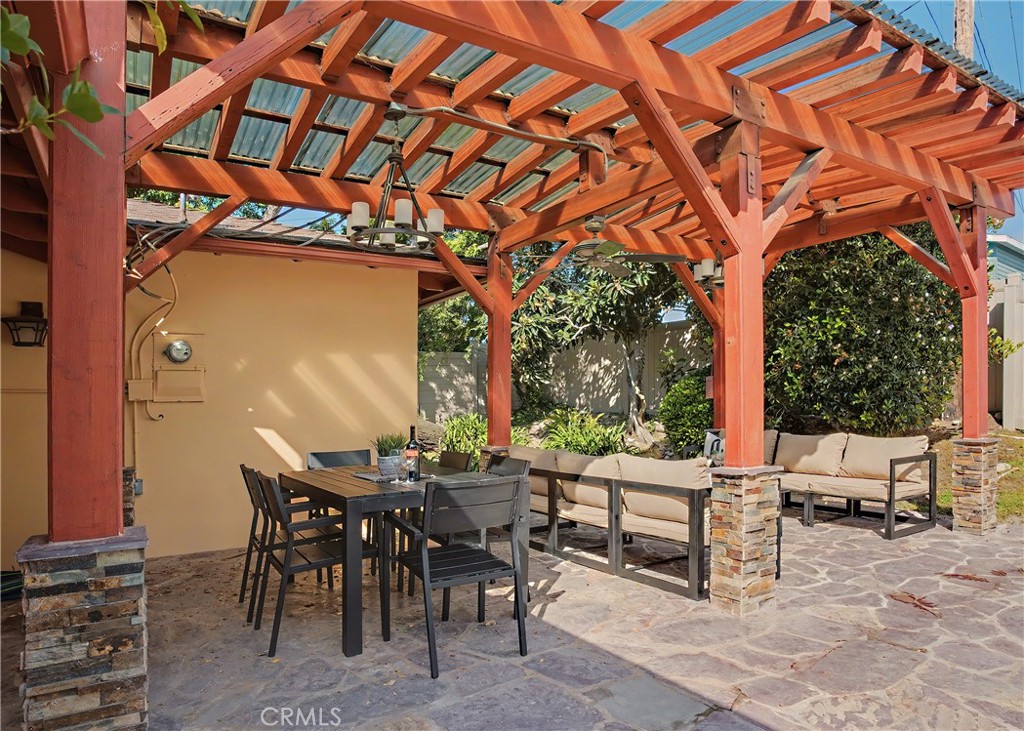 Beautifully updated turn-key spacious single level home with 4 bedrooms, 3 baths, and Living/Dining and Family areas. The home has hardwood floors, crown molding, granite counters and double pane windows/doors throughout for a sunlit, natural ambience. It’s efficient layout is designed to enjoy flowing indoor/outdoor living. Enter into the Living/Dining room that opens to French doors to a custom-built backyard entertaining area with a huge slate patio, barbecue station to put your own appliance, and large covered pergola with lights, fan, and new privacy vinyl fence. A full glass wall in the Living Room/Dining area overlooks the patio and completes the indoor/outdoor feeling. Sunny Kitchen with granite counters, breakfast bar, breakfast nook area, wood cabinetry, built-in fridge and new flooring. Family Room off the kitchen opens to a sunny and private brick patio. Large Primary Suite with an entire wall of built-in closets/cabinets and primary bath with walk-in shower. Of the 3 additional bedrooms, 2 are primary-size bedrooms. The large rear-bedroom opens onto the slate patio through a new 8-feet double-paned sliding door. The whimsical fourth bedroom is perfect for a child's room or a home-office, and opens to the private brick patio. All 3 bathrooms are updated, with granite counters, and one with a double sink. The two-car finished garage off the Family Room with built-in cabinetry could be flex room for exercise, office, game room, etc. Laundry area is located here. This home has great curb-appeal with new paint in and out, a new roof, newly refinished wood floors, granite resealed & polished, new dishwasher, and newly landscaped front yard. Award winning Palos Verdes schools. Centrally located within walking distance to Silver Spur Elementary School, Palos Verdes Peninsula High School and Peninsula Shopping Center. Harbor and city lights view from Driveway and Garage.