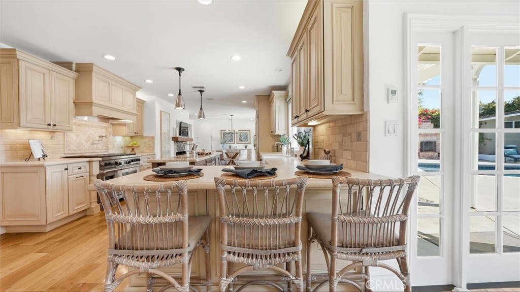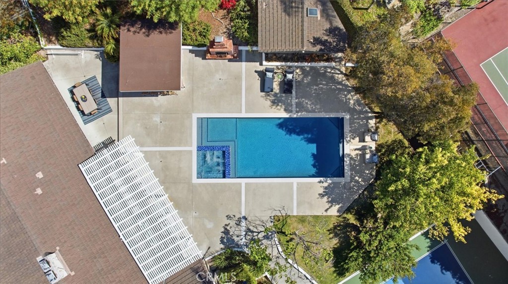 Welcome to summer all year round at your own private resort in the heart of Masongate. Tucked away on a quiet cul-de-sac in Rolling Hills Estates, this Coastal California ranch estate sits on an expansive, fully usable 26,000 sq ft lot—offering the perfect blend of privacy, space, and effortless indoor-outdoor living. This 4-bedroom, 4-bath home is designed to impress, with a floor plan that opens to a true entertainer’s backyard. Enjoy a newly updated pool and spa with Bluetooth-controlled lighting and heating, an electronic pool cover, and a separate pool house. The covered outdoor BBQ kitchen and gas fireplace create the ultimate setting for unforgettable California evenings. For those who love to stay active, the property features a lighted pickleball/sports court and is zoned for horses with direct access to scenic riding trails leading to Ernie Howlett Park. Inside, the chef’s kitchen flows into the great room and is equipped with Sub-Zero refrigeration, a Wolf range with griddle, three ovens, two dishwashers, and a warming drawer—ideal for hosting at any scale. Additional highlights include dual-zone HVAC and a whole-house water filtration system. The sun-filled grounds are lined with mature fruit trees and offer ample space for an ADU, expansion, or future vision. A rare opportunity to own a private compound in one of the South Bay’s most sought-after neighborhoods.