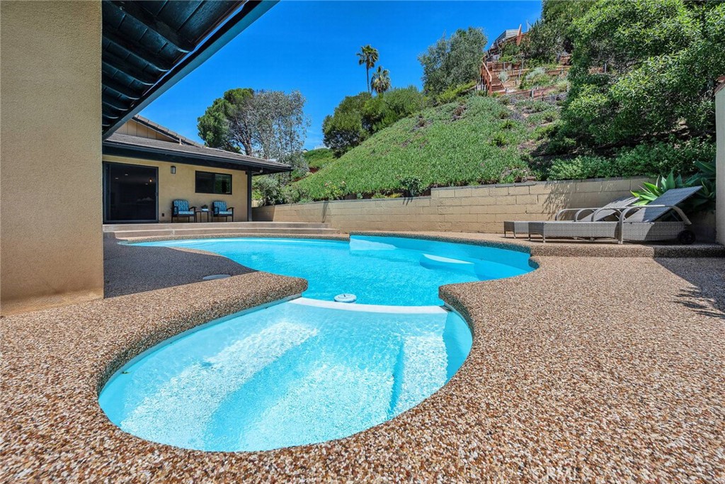 Lovely remodeled Montecillo single level, 3 bedroom, 3 bath pool & spa home on estate size .41 acre lot. The open floorplan offers seamless blend of indoor-outdoor comfort, privacy & functionality. Welcoming covered front entry opens to warm & inviting living room with stone facade gas fireplace, spacious dining area & chef’s delight kitchen. Large center island with breakfast counter, quartz & tile finishes, 2 stainless steel sinks & disposals, undercounter lighting & stainless steel appliances including refrigerator, 36” 6-burner gas range, hood, wine cooler, microwave oven & dishwasher. Hardwood floors, dual pane windows & obscure glass panel doors throughout. The primary suite has walk-in & mirrored wardrobe closets & beautifully finished quartz & tile bath with dual sinks, separate large shower & soaking tub. Additional bedrooms have mirrored wardrobe closets & Plantation shutters & baths have attractive stone & tile finishes. Convenient inside laundry room with washer & dryer & pull-down stairs in hallway for extra attic storage. The property was extensively remodeled throughout 2016+, including sewer & gas lines, ABS waste & copper plumbing, HVAC system (furnace, condenser, ductwork & Nest thermostat), tankless water heater, upgraded panel & electric service, recessed LED lighting, wired for sound at pool patio, pool replumbed, pool heater, pebble decking around pool with drains, irrigation system & landscaping. Newer light-weight tile roof, engineered concrete drainage at the top of rear hillside, water softener, security & multiple smart systems plus heavy-duty shelving, 220V & 20A outlets, roll-up garage door & opener in attached 2 car finished garage. Ideally located in the N/E section of Rolling Hills Estates, near Jack Kramer Club, Rolling Hills Country Club & award-winning Palos Verdes Schools, with easy access to shopping, restaurants & freeways. Enjoy morning coffee on the rear patio & sunset cocktails around the pool & spa!